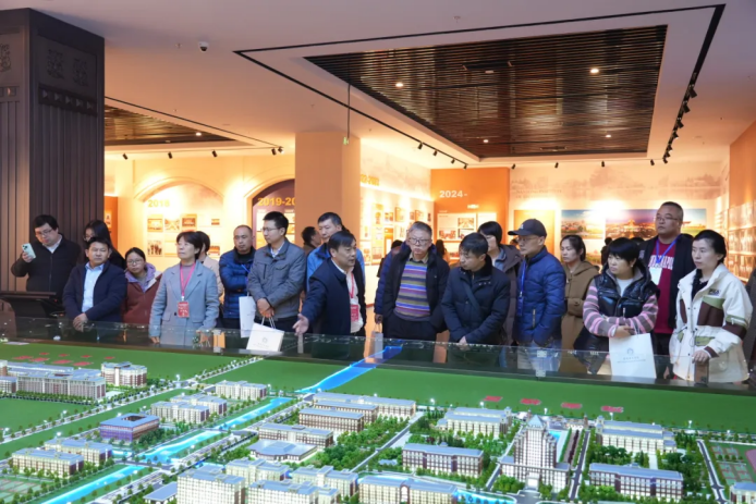 會后,evo真人视讯科技集團董事長張福德、總經理唐佩隨隊和與會人員一起參觀了南通理工學院的數智展館、張謇教育文化館等地并合影留念。