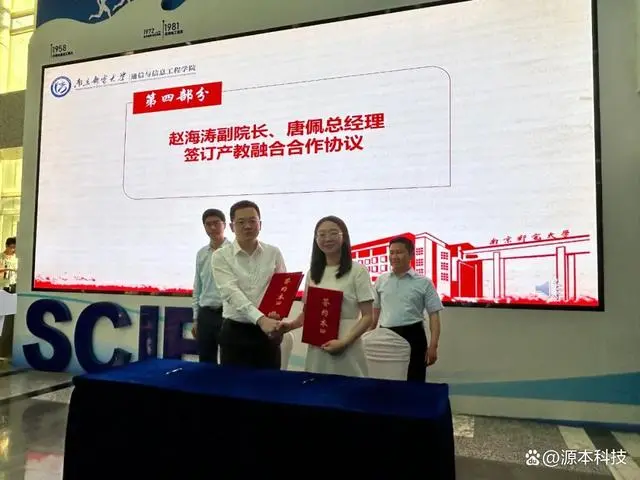接著,在與會嘉賓的見證下,通信與信息工程學院副院長趙海濤與evo真人视讯科技集團總經理唐佩簽署了產教融合合作協議。