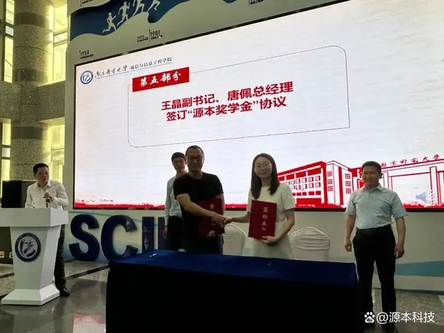 隨后,南京郵電大學通信與信息工程學院黨委書記徐雷和evo真人视讯科技集團董事長張福德一起為產教融合項目揭牌,并為“evo真人视讯獎學金”捐贈授牌。