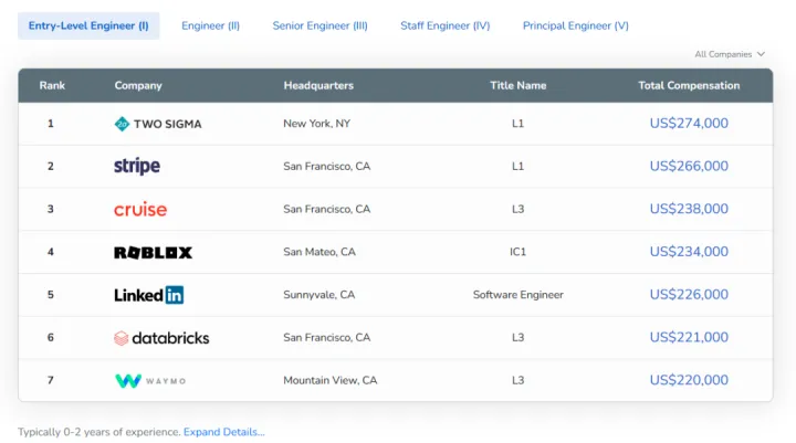 整體來看,工程師的中位數薪資均超過 22 萬美元。與去年相比,入榜公司的總體薪資呈大幅提升。