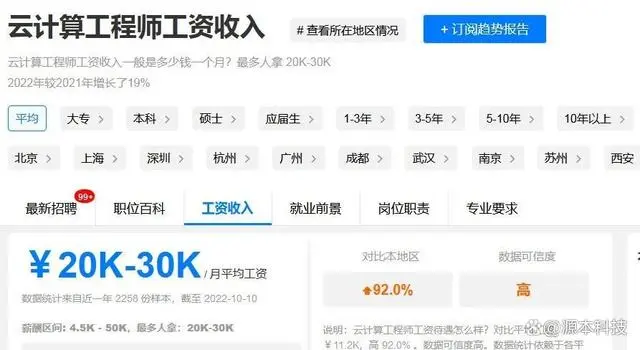 成為互聯網新興的高薪技術方向,云計算也是無可厚非的。云計算作為工業4.0的基石,奠定了數字化經濟的核心基礎設施;同時云計算與大數據、人工智能、物聯網等技術的高度融合,成為工業互聯網和企業升級的重要手段;同時也是東數西算工程的重要載體,傳統行業向數字化轉型的基礎。云計算的江湖地位決定了他的薪資定位,而云計算本身就是由各種IT技術組成,技術更新快含量高,薪資待遇只高不低。